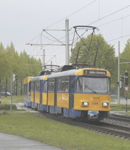 Die Straßenbahn verkehrt in den Hauptverkehrszeiten im 10 Minuten-Takt.